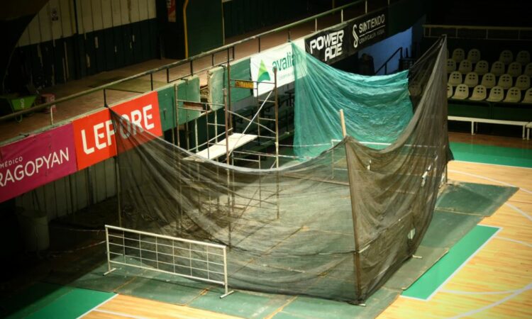 Para poner el Estadio a punto para el comienzo de Liga Profesional, de la Women’s Basketball League Americas y más partidos internacionales, se están realizando diversas tareas de adecuación como la colocación de los nuevos aros de básquet con sus correspondientes jirafas.