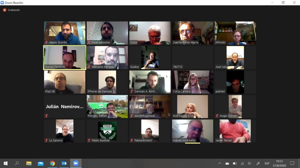 Debido al aislamiento social y obligatorio, provocado por la pandemia del coronavirus, la Comisión Directiva aprobó, en la reunión de Marzo y por unanimidad, la moción de sesionar de manera virtual. De esta manera, la trigésima octava reunión de Comisión Directiva del período 99 se llevó a cabo este jueves 27 de agosto a través de la aplicación Zoom. La misma fue encabezada por el presidente Daniel Pandolfi.