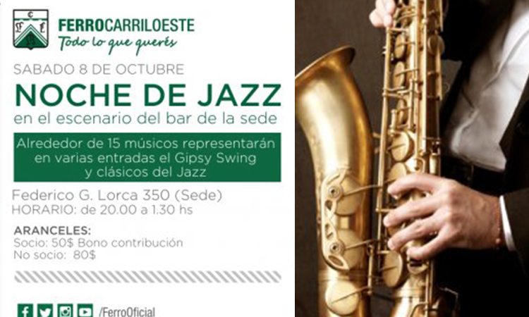 El próximo sábado 8 de octubre se podrá presenciar la noche de jazz en la sede social, ubicada en Federico García Lorca 350. Alrededor de 15 músicos representarán Clásicos de Jazz y al Gipsy Swing.