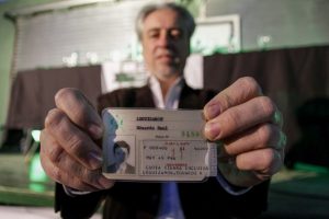 Oscar Leguizamón con el carnet de su hermano Eduardo, quien en 1990, el presidente del club en ese entonces, Santiago Leyden, le reconoció al socio víctima de la dictadura, su condición de vitalicio.