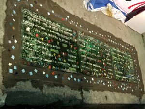 Las baldosas en el frente del club con los 16 nombres de los socios de Ferro desaparecidos